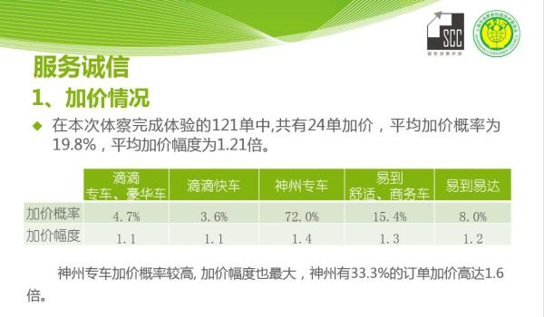 在本次体察完成体验的121单中,共计有24单加价,平均加价概率为19.8%,平均加价幅度为1.21倍。