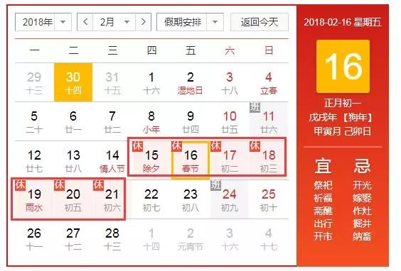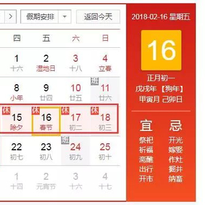 据国务院节假日安排通知,2018年春节放假时间为2018年2月15日至2月21日,共7天。今年春节长假期间(除夕至正月初六),将继续实施免收7座及以下小型客车的通行费的政策。具体免费通行时间为:2018年2月15日零时至2月21日24时,共7天。