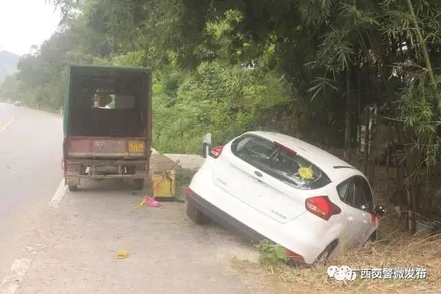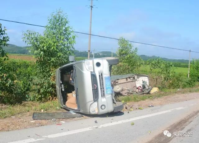 [回头拿手机]2017年7月12日早上7时许,来宾金秀县发生一起小轿车与一辆二轮电动车、一辆三轮电动车和一辆面包车碰撞的交通事故,造成1人死亡,4车不同程度受损。