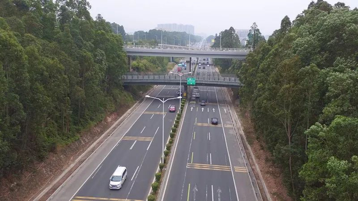 梅观高速是我市南北向主要通道,全长19.2公里,其中13.8公里已取消收费。道路设计时速为80km/h,沿线与15条道路相交,其中分离式立交9座,互通立交6座;道路横断面分为两种形式,清湖立交以南为双向六车道,清湖立交以北为双向八车道。