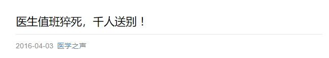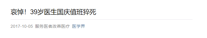 最近有一则消息:安徽六安裕安区一位医生猝死了,年仅31岁。猝死的地点是医院值班室。