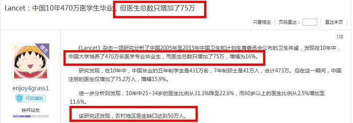 (Lancet杂志说:470万医学生毕业,医生总数只增加了75万。不过这里说明一下,这份杂志的数据可能夸大了,丁香医生曾做过一个科普:470万夸大了,事实可能只有134万。)