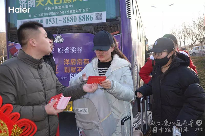 为了方便长清大学城的大学生们到济南长途汽车总站乘车,海尔“爱心直通车”3日、4日两天准点从长清大学生免费接上回家的大学生,直达济南长途汽车总站。