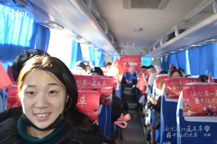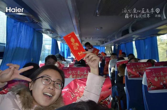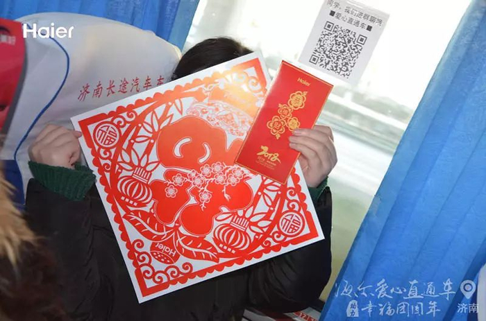 “这趟旅程非常开心,不仅乘坐了爱心直通车,还拿了福字、窗花和红包等礼品,非常感谢海尔‘爱心直通车’。