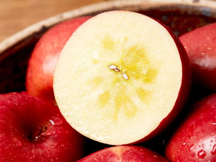 但是这颗“冰糖心”,会随着温度变化慢慢融化在果肉中,并不是每一个苹果都有“冰糖心”。