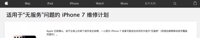 日前,苹果公司官方确认,由于主板上某个组件发生故障,部分iPhone 7哪怕在蜂窝移动信号覆盖范围内,状态栏也可能会出现“无服务”的显示。