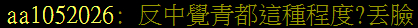 对于该“台独”分子“逢中必反”的言论,有网友留言讽刺,“‘反中’‘觉青’都这种程度?丢脸”。