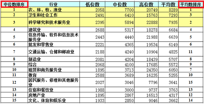 低位数是指样本数据按照工资水平从低到高排序后,数列中前10%的数据的算术平均;中位数是指排在50分位值的数据;高位数是指数列后10%的数据的算术平均;平均数是指全部样本数据的平均数。