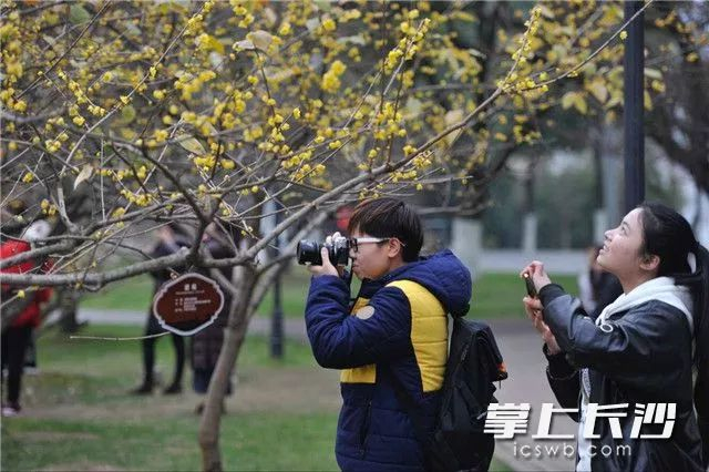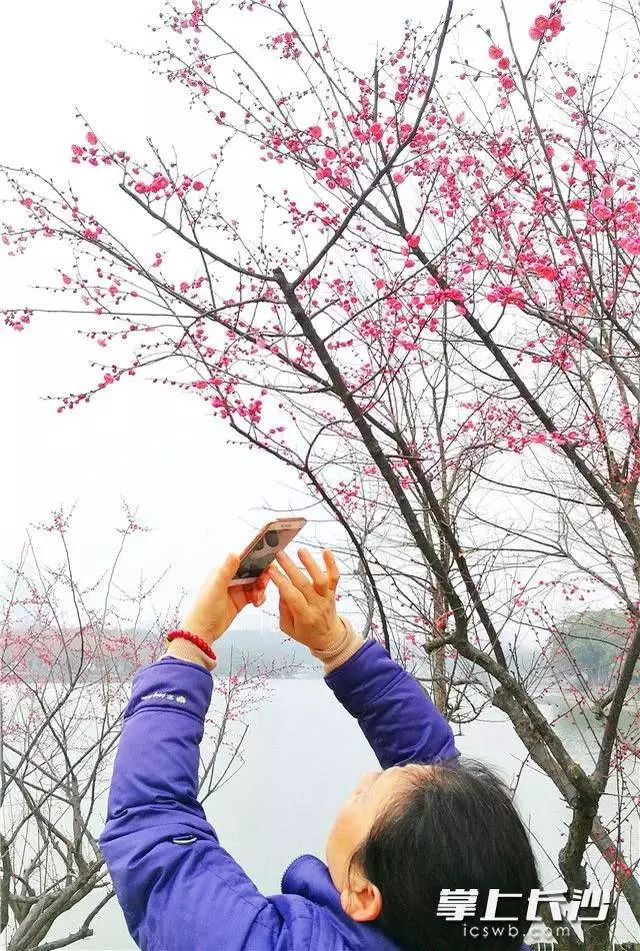 游客在拍摄橘子洲梅园盛开的梅花。长沙晚报记者 王志伟 摄