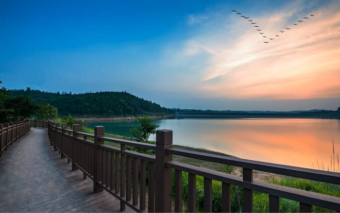 国家AAAA级旅游景区,四川省第一个国家级水利风景区,以仙海湖为中心的核心区,由6.8平方公里的浅丘低山和7平方公里的水面构成,森林覆盖率达90%,形成有46座精致的半岛,半岛穿插,湖岸曲折,泊岸长达40余公里,自然环境“山抱水,水漫山”,“山衬水,水映山”,山水一色,形成水乳交融的天然画卷。水质清冽,为二级地表水。更有鸬鹚、白鹭、野生鱼群、银杏树等多样性的动植物。