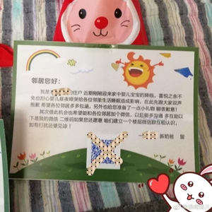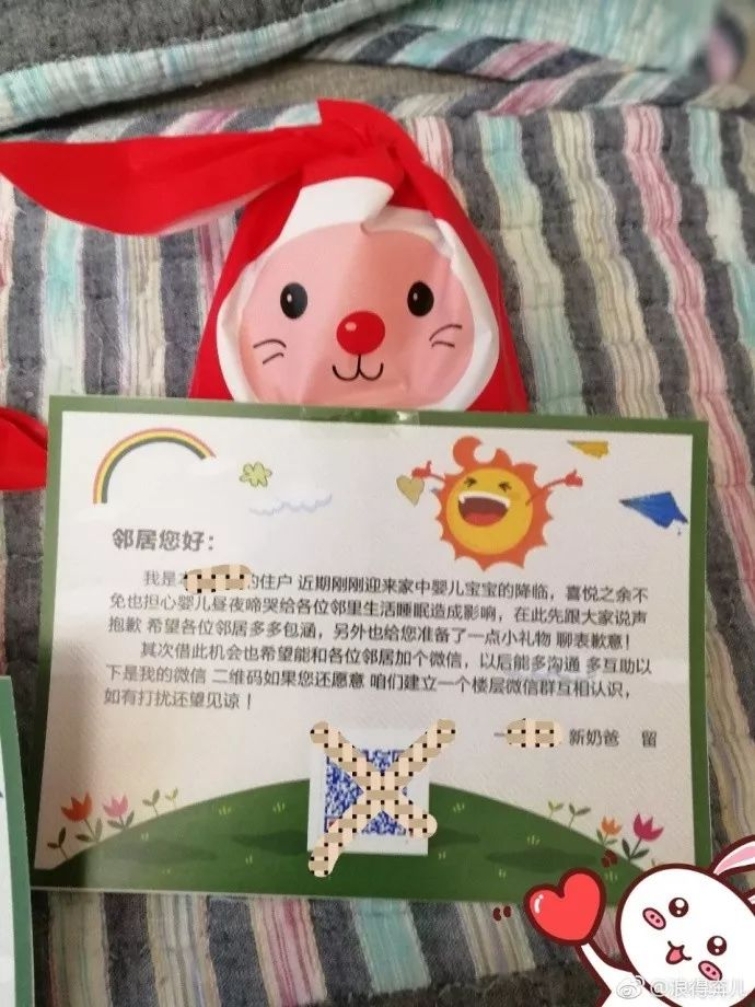 我是 的住户,近期刚刚迎来家中婴儿宝宝的降临,喜悦之余不免也担心婴儿昼夜啼哭给各位邻里生活睡眠造成影响,在此先给大家说声抱歉,希望各位邻居多多包涵,另外也给您准备了一点小礼物,聊表歉意!