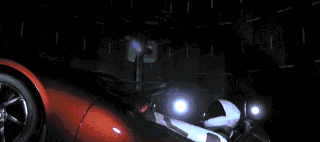 重型猎鹰的首次飞行还搭载了马斯克旗下的一辆红色特斯拉跑车,特斯拉车内屏幕上写着Don't Panic(不要惊慌),跑车上有一位穿着宇航服的假人“宇航员”Starman,车上还会播放1969年戴维·鲍伊的经典歌曲《太空怪人》,主题正是讲述宇航员与太空飞船的故事。