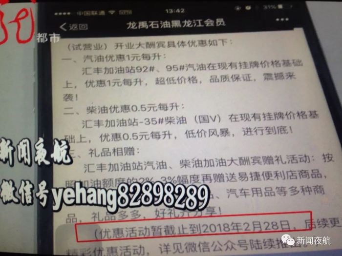 哈尔滨市民李毅在微信里看到一家加油站开业活动的宣传,宣传中介绍这次活动优惠多多,礼品多多。最吸引人的就是,每升汽油的优惠能够达到一块钱。