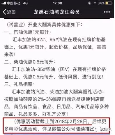 如果按照这名工作人员的说法,我们也能够理解。但我们不理解的是,既然知道优惠活动得一个月一申请,为什么不能把这项工作做在开始宣传之前,给出更准确的结束时间。在问题出现后,我们在加油站的微信公众号里,还是能够看到这篇文章,一直都没有删除。