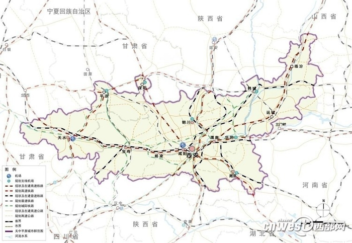 关中平原城市群交通网规划示意图。将西安打造成为国际性综合交通枢纽 适时启动新一轮城市轨道交通建设规划
