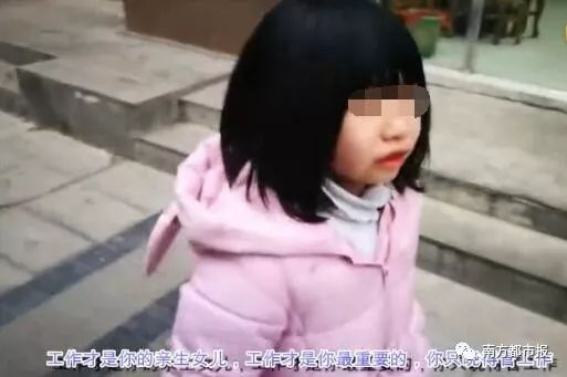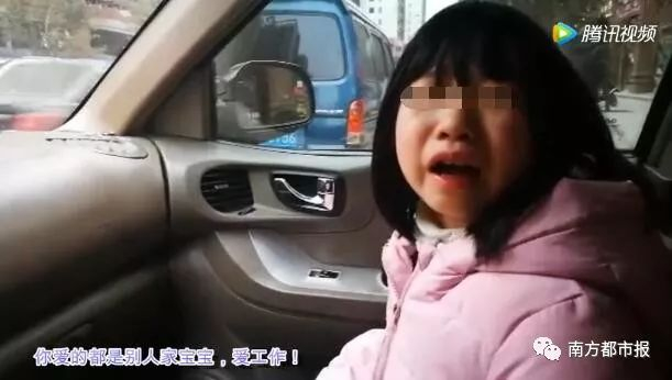视频中7岁大的女孩哭着说“工作才是你亲生女”、“你根本就不爱我”、“你凭啥下班了还在那边(工作)”等话语戳痛了不少网友的心,同时也有不少网友猜测孩子父亲的职业。