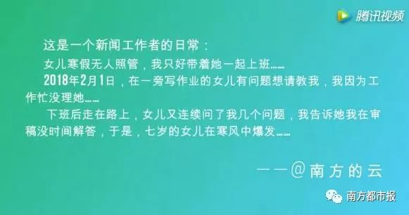 视频拍摄的当天(2月1日),他带着放假的女儿在单位上班,女儿在做作业的时候遇到了问题,因为自己一直在忙,这个问题过了几个小时都没有帮女儿解答,这才有了女儿的哭诉。
