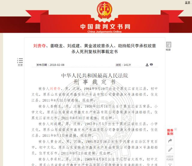 原标题:刘贵夺、姜晓龙、刘成建、黄金波故意杀人、劫持船只李承权故意杀人死刑复核刑事裁定书