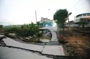 塌陷次数最多的路:2013年10月南海西樵致兴路同一位置一年内五次塌陷。