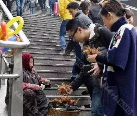 成都春熙路天桥下有个卖鸡毛毽子的婆婆,家境困难,网友知道后都去照顾生意。