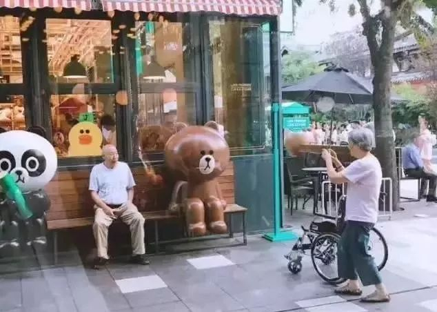 2017年7月,成都太古里。老奶奶正为腿脚不便的爷爷拍照。简单的三张照片,令人动容,所谓的白头偕老,大概就是这样吧...