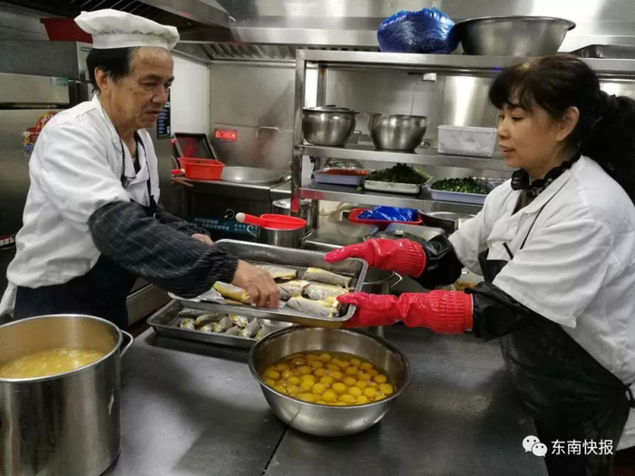 外面虽是寒风习习,但在热火朝天的厨房里,这群平均年龄50岁以上的老师傅们默默奉献的身影,让人感到暖心。
