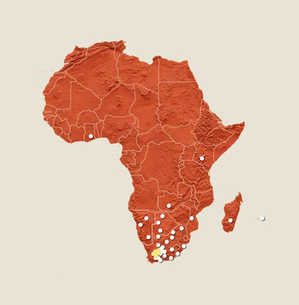 而非洲的9个国家负责中高频部分。分别为:南非、博茨瓦纳、加纳、肯尼亚、马达加斯加、毛里求斯、莫桑比克、纳米比亚、赞比亚。