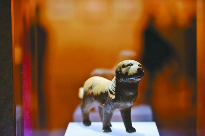 近日在“幸运狗——南京博物院藏犬文物特展”上展出的石湾窑陶瓷狗。光明图片/视觉中国