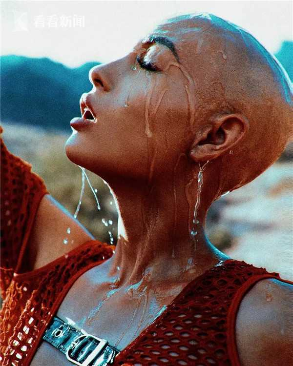 没有假发的遮掩,这样的她依旧很美丽。有人说她光头不好看,她就偏要用光头造型拍出好看的照片;