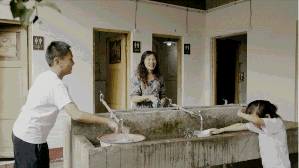 一个妈妈在洗衣服,拍这个场景的时候,有一个很意想不到的事情,就是傅姐她一个70后的设计师,有一儿一女跟她一起玩,她拍着拍着,她就流泪了哭了。