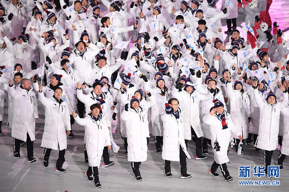 平昌冬奥会开幕式朝韩体育代表团共同入场