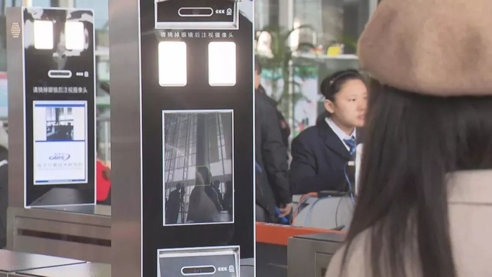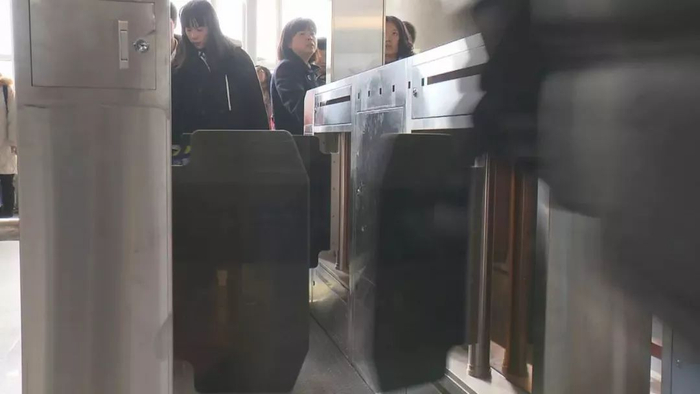 打开第一道闸门,经过第二个闸门前,会要求人再次面向摄像头,进行人与证件信息的核验后,就可以顺利进站
