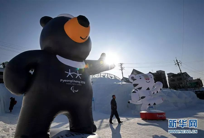 ▲2月7日在韩国平昌奥林匹克公园里拍摄的2018年冬奥会和冬残奥会吉祥物。