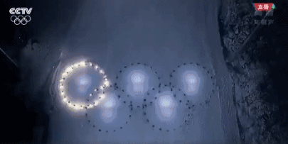 孩子们共同放飞了一只和平鸽,代表着和平!天空被1218架无人机点亮,组成一个闪亮的人形,地面是5位单板滑雪者和100位双板滑雪者在奥运的赛场上疾驰而下!1218架无人机在天空组成硕大的五环!