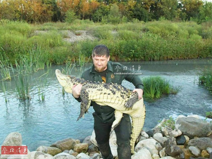 图为卡德罗夫徒手抓鳄鱼,看鳄鱼那么乖巧温顺,没准是被下过药了。