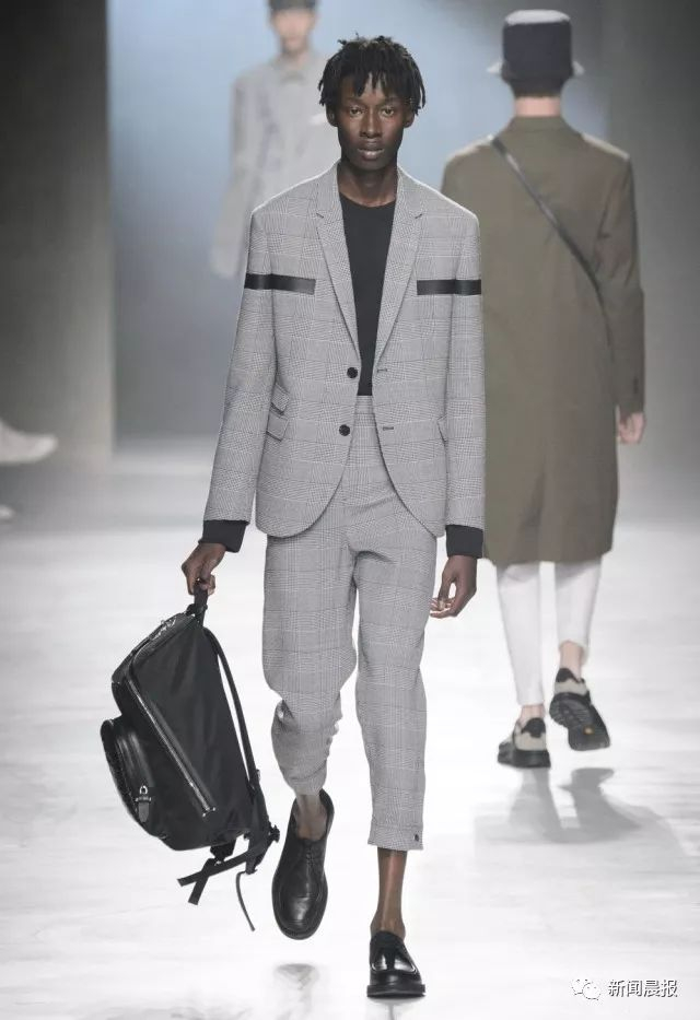 这件灰色格纹西装来自Neil Barrett 2018春夏系列。