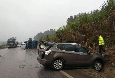 2月10日中午11点50分左右,在扶绥县东门镇322国道旧城村路段,一辆小车与一辆货车相撞。