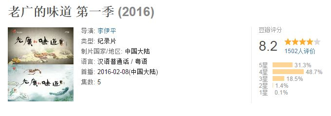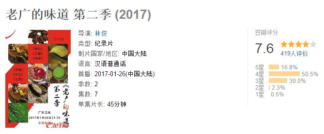 《老广的味道》第一、二季自2016年春节开播以来,好评如潮,该片也曾在央视和各大卫视播出。