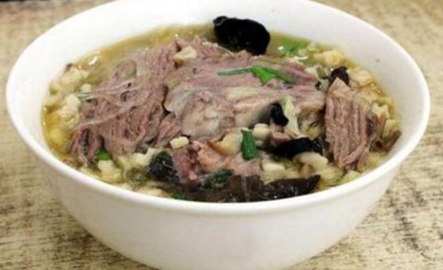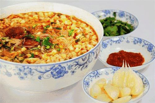 是西安本土传统名吃之一,由制血、配调料和泡馍三个步骤精制而成。食时配以粉丝、香菜等辅料。羊血鲜嫩、粉丝光滑筋软、辣香扑鼻。寒冬食用为最佳。又因所用调料多为温中健胃和芳香开窍的中药,故特别受年老胃弱的顾客的青睐。