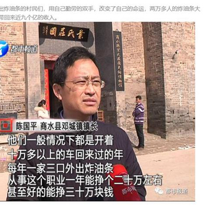 靠着在平顶山炸油条,张有志实现了脱贫致富。随着眼界的开阔,张有志接着去了郑州,后来辗转来到西安炸油条。张有志的经历也引发邓城镇的村民争相效仿。