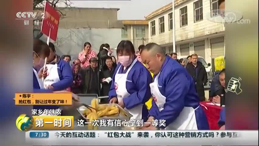 据央视新闻,2月9日,邓城镇广场前一片沸腾,油香飘荡。和面、开火、切条、揉形、下锅……随着选手一个个登台,一根根黄灿灿的油条出锅,惹得围观人群直咽口水。