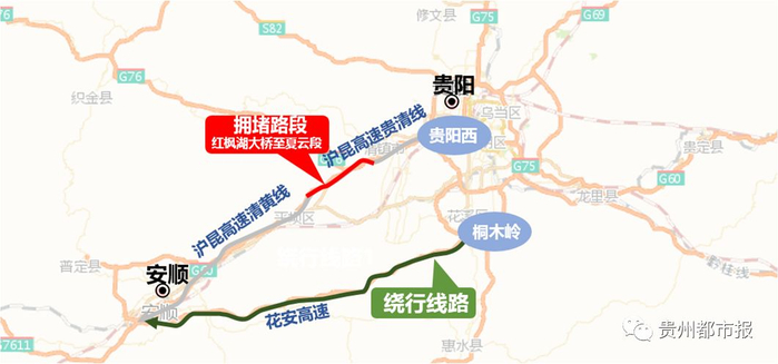 前往安顺、昆明方向的车辆,建议经花安高速前往,避开沪昆高速清黄线易拥堵路段。