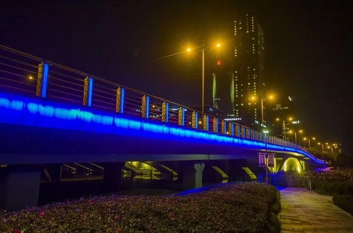 甬新河宁穿路或者宁东路大桥上:可观看桥梁优美的轮廓及光影变换;河清路:可观看光色优雅的中央隔离带景观照明。
