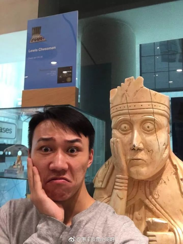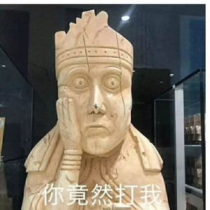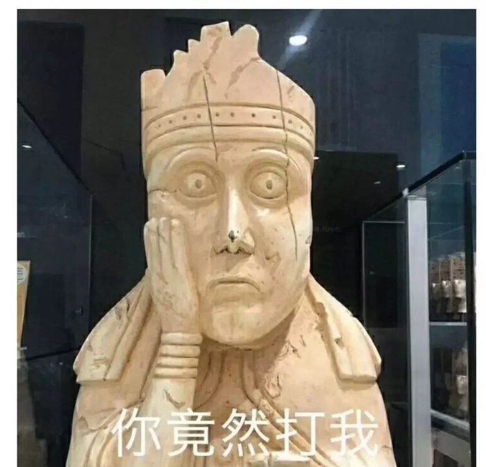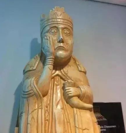 这其实是大英博物馆(British Museum)的十大馆藏之一,古国际象棋lewis chessmen,表情包里的其实是“后”的那个棋子。
