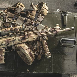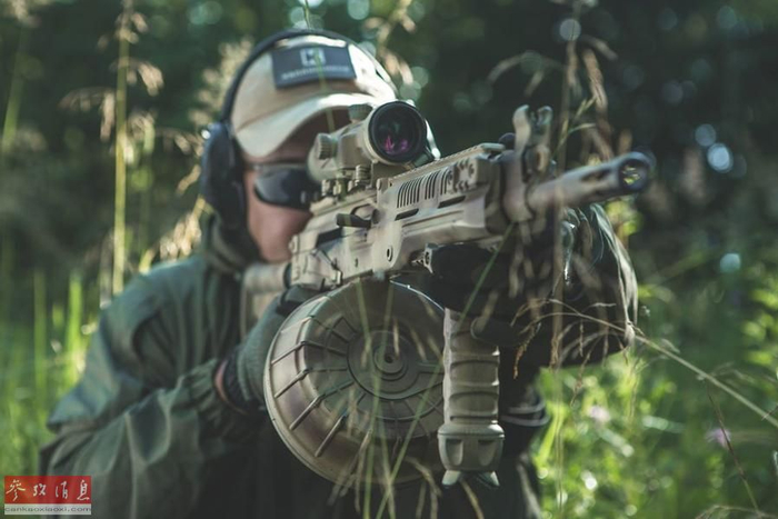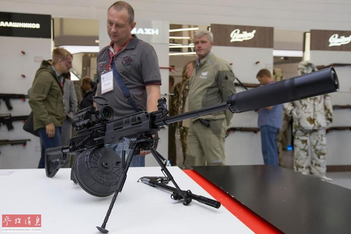 根据官方资料显示,RPK-16最大射速每分700发,最大有效射程800米,可发射5.45毫米弹药,配有96发专用弹鼓,也可使用AK-74和RPK-74的弹匣。图为防展上展出的RPK-16轻机枪,加装有大型弹鼓、两脚架和消声器。