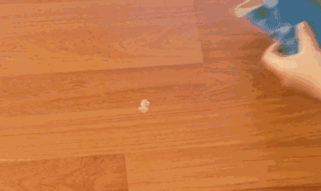 如果地板上不小心粘上口香糖,可以用冰袋或者冰冻的物品放在口香糖上,等待几分钟。