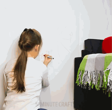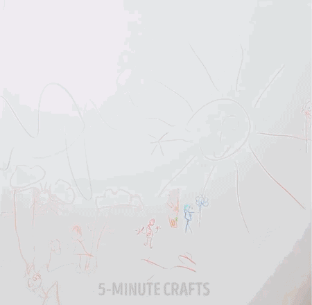 借助一个吹风机,对着墙上吹热风,软化彩蜡后,用干毛巾擦一擦,痕迹立马消失不见!