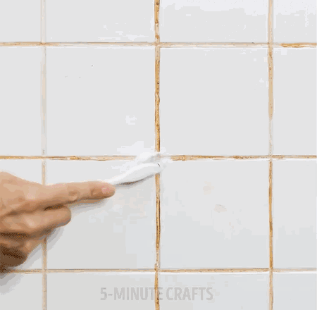 拿刷子蘸取一点清洁剂,刷在瓷砖的缝隙上,再用抹布擦干,轻轻松松就能变干净!