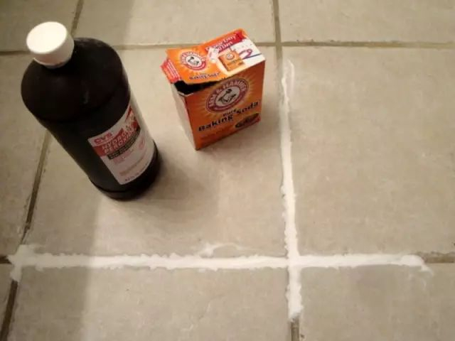只需要将小苏打撒在瓷砖缝隙处,然后倒上少量双氧水。