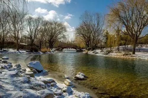 在黄州的三四年时光里,每到初春,积雪尚未消融殆尽,东坡就和家人、朋友一起,扛着锄头、踏着积雪、走过小桥,来给冬小麦锄草松土。春寒料峭,大家居然干得身上微微出汗。看看已是晌午,大家又扛着锄头、踏着积雪,来到雪堂小憩、吃点儿喝点儿。